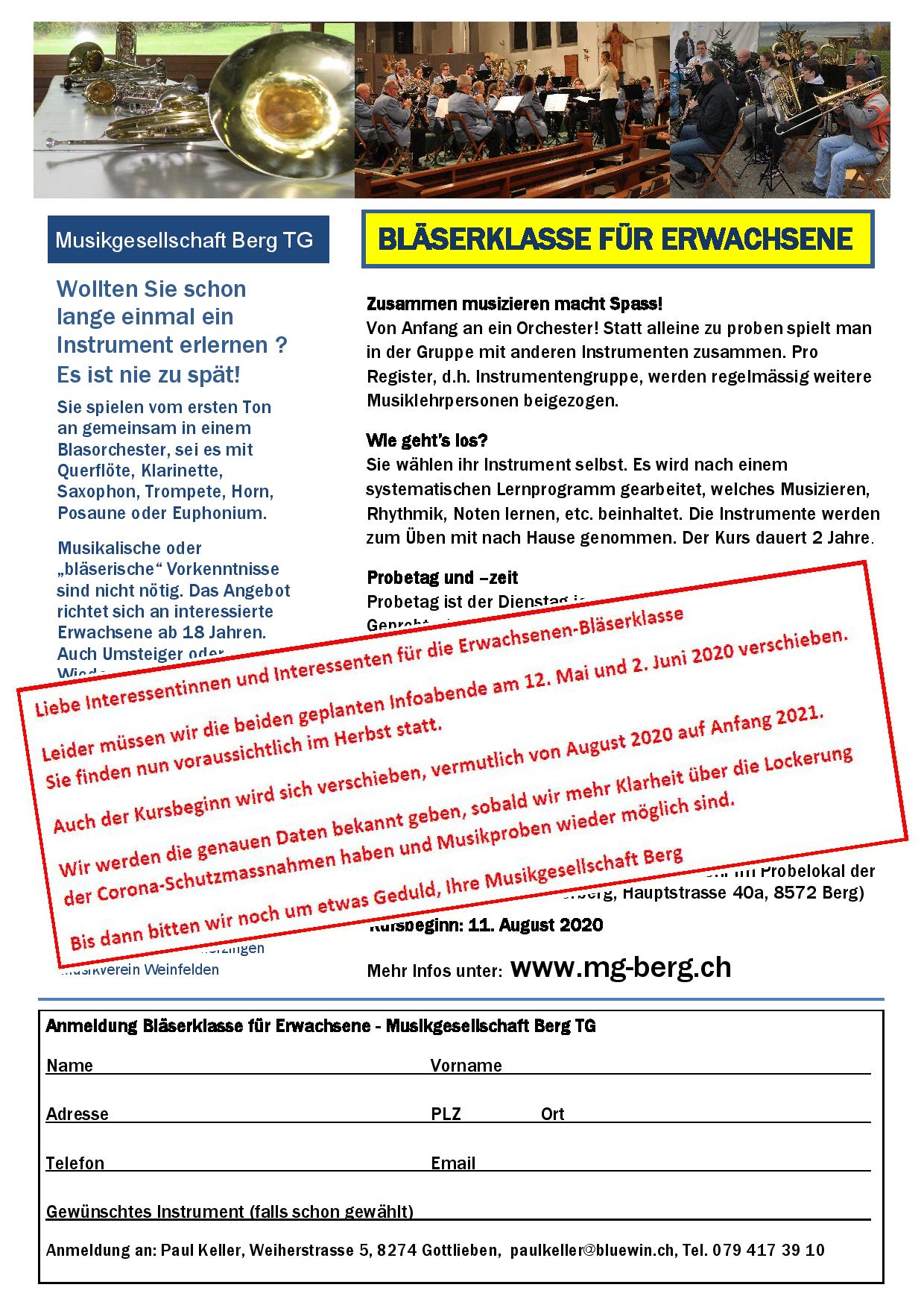 VERSCHOBEN: Infoabend zur Bläserklasse für Erwachsene